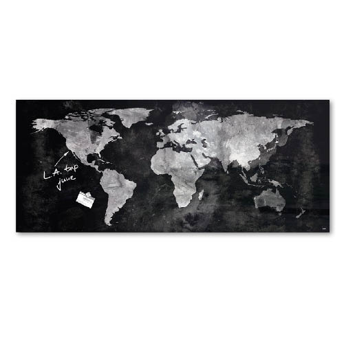 Biztonsági üvegből készült mágneses tábla világtérképpel, erős SuperDym mágnessel és rögzítőelemmel.