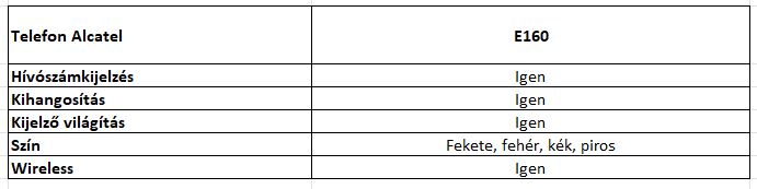 Állítható hangerő, hívószámszerkesztés, keresés gomb, ébresztő funkció, alacsony akku-szint jelzés, színopciók: fekete, fehér, kék, piros