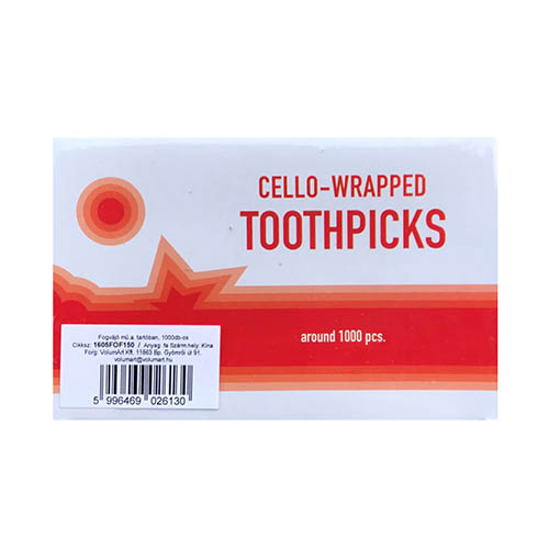 Fából készült fogvájó, darabonként csomagolt, a maximális higiénia megőrzésének érdekében.